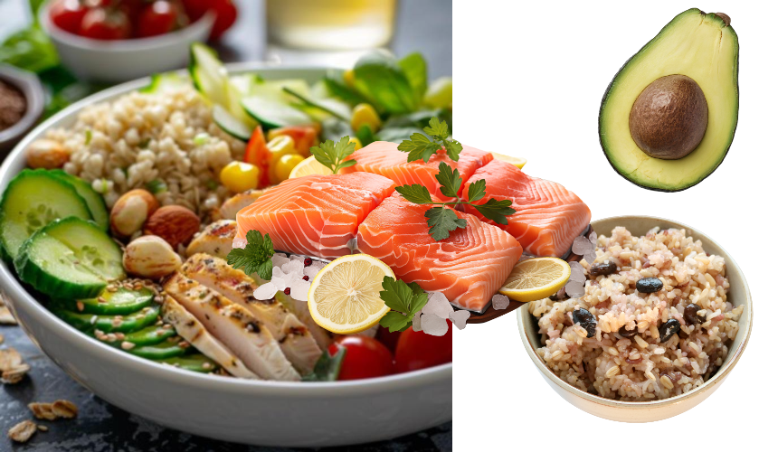 - 예: 닭가슴살, 계란 흰자, 두부, 생선 (연어, 고등어)